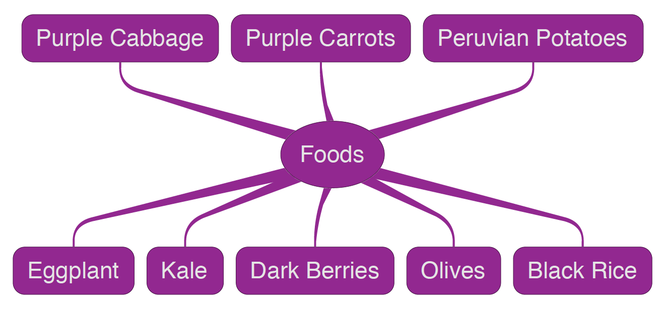 Blue, Purple, and Black foods beg to be noticed. In fact, I find purple downright gaudy. So let's take a look under the hood to see if we can discover just why these foods are such flashy advertisers. First, the pigments: