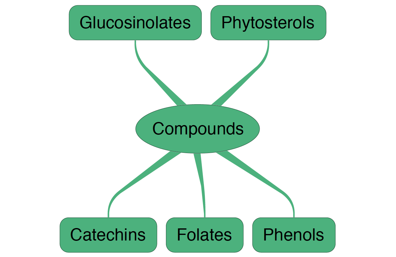 These are simply plant sterols. They are molecularly similar to the famous sterol we all produce ourselves—cholesterol. You may have heard of cholesterol? The role of cholesterol in heart disease is more complex than we once thought (inflammation probably matters more), but it's still something people often worry about. Phytosterols appear to decrease the absorption of cholesterol from the gut, by competing for absorption ports there. Eating green things with your meat may be a good idea—for more reasons than one, as we shall see.